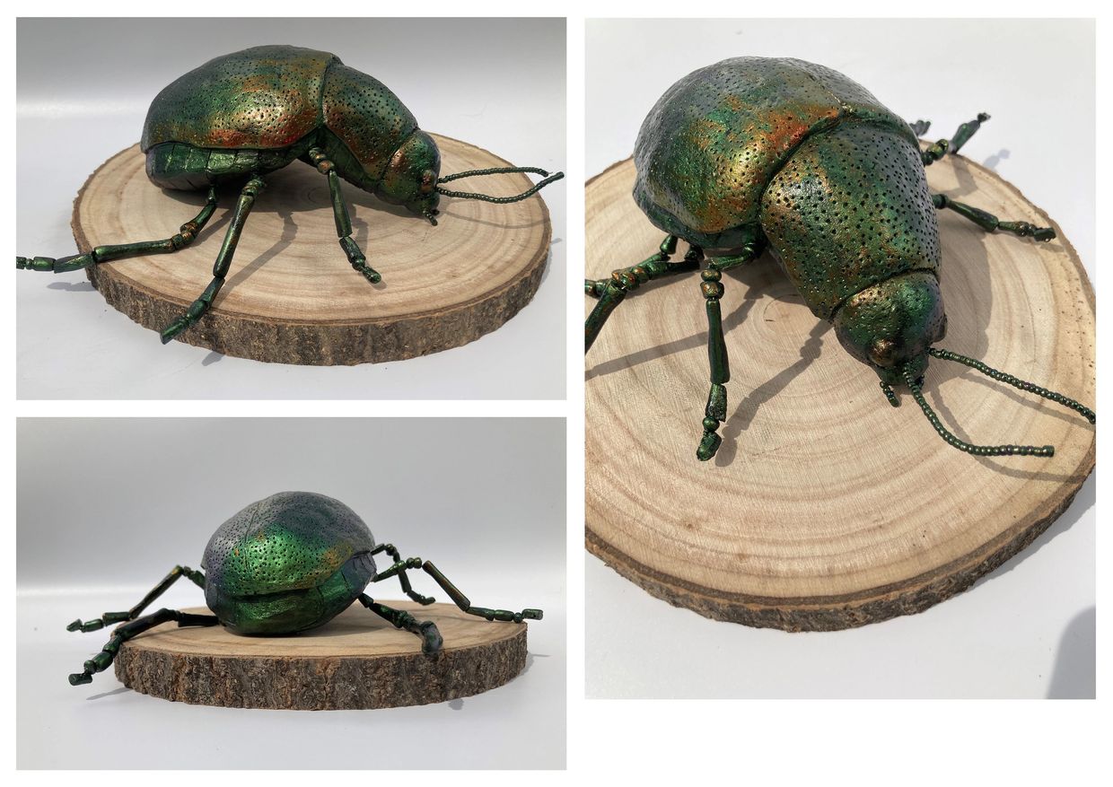 The ‘Jewel of York’ tells the story of the tansy beetle. Once thought extinct due to the reduction in suitable wetland habitat and food plants, one of the last remaining UK populations was discovered on the River Ouse in York. The beetles wing cases have a striking appearance of iridescent green and copper, and legend tells us the Victorians used them as sequins. Now an endangered species, research is underway to help with the conservation of this unique insect.